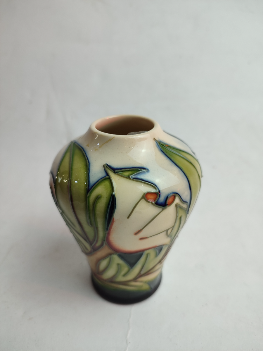 Small Moorcroft vase by Sian Gibson. Height 10cm. Good condition.